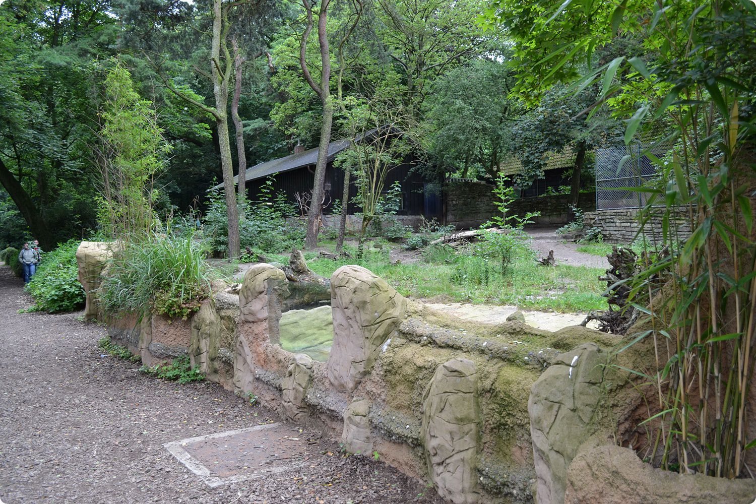 A bemutatót csak vizesárok határolja a látogatói részről. A nagymacskák férőhelye kellően tágas, e mellett növényekkel sűrűn be van ültetve, azonban kevésbé korszerű, az idő alaposan eljárt felette. A tervek szerint néhány év múlva elkészülhet a tigrisek új kifutója.