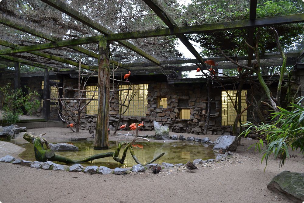 Az állatkert bejáratától nem messze került kialakításra az a nagyméretű tó, amely vízi teknősök, különféle réce-és lúdfajok mellett vörhenyes pelikánok (Pelecanus rufescens) és karibi flamingók (Phoenicopterus ruber) bemutatatására is szolgál.