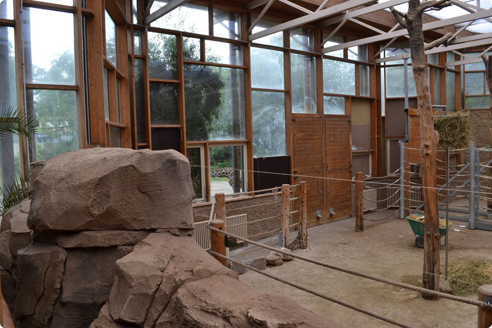 Az állatkert több más, növényevő emlősöknek otthont adó kifutójához hasonlóan a kétpúpú tevék (Camelus bactrianus) kifutóját is csak szárazárok határolja.