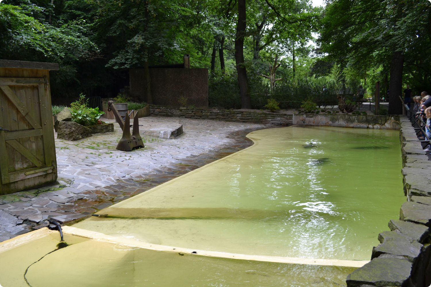 Az amazonasi folyamidelfin 650.000 literes medencéje a Rio Negro bemutatóban. A delfin későbbi pusztulása esetén az állatkert nem tervezi új egyedek beszerzését, a bemutatót karibi manátuszok (Trichechus manatus manatus) számára fogják átalakítani.