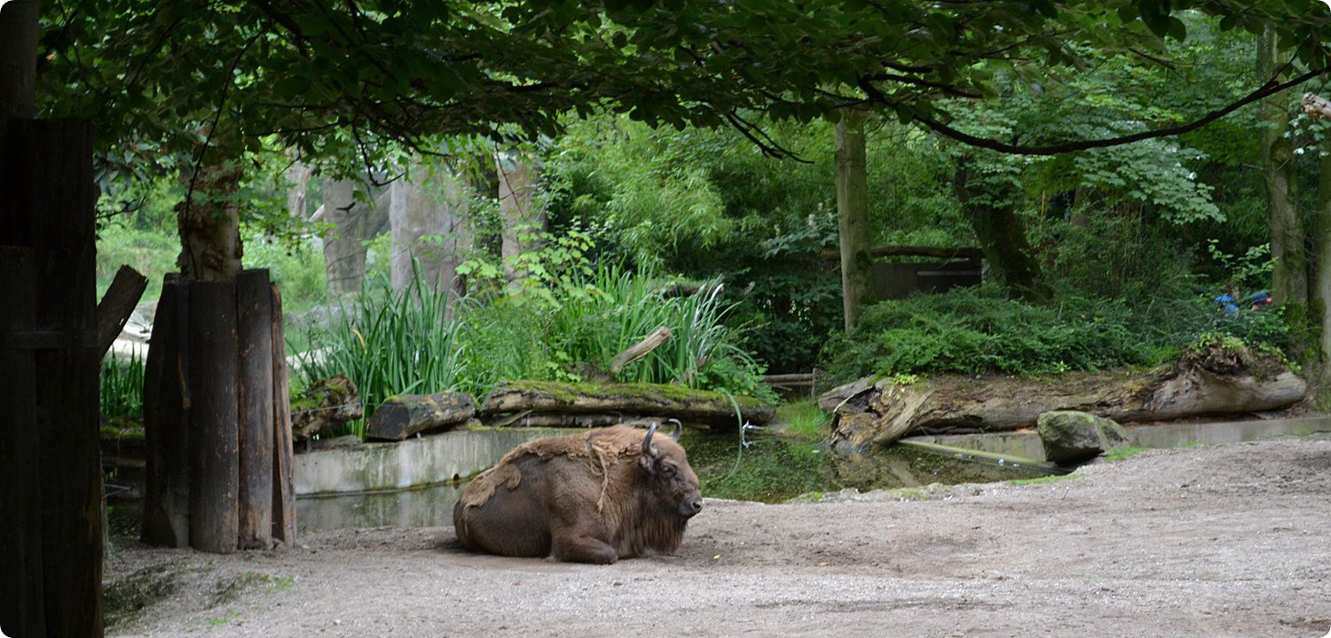 Az európai bölénycsapat (Bison bonasus bonasus) kifutójában egy fekete gólya (Ciconia nigra) is helyet kapott, szükség esetén visszavonulhat a férőhely bölényektől elzárt részére.
