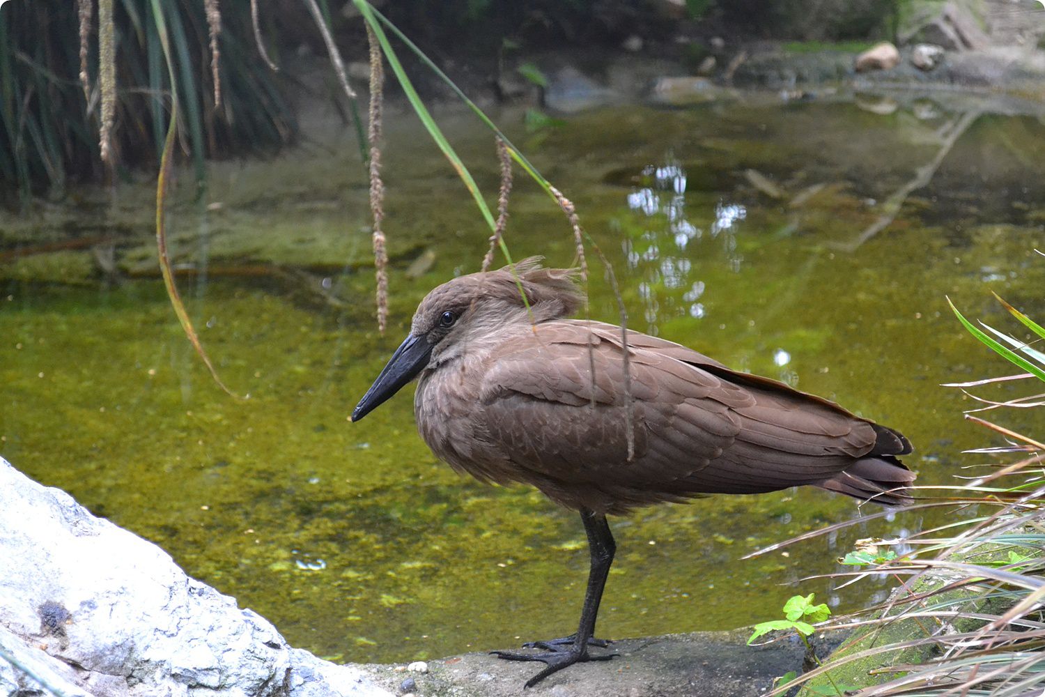 Gogó, más néven kalapácsfejű madár (Scopus umbretta) a Fácános egyik röpdéjében. A bemutatóban himalájai fényfácánok (Lophophorus impejanus) és kookaburrák (Dacelo novaeguineae) is helyet kaptak.