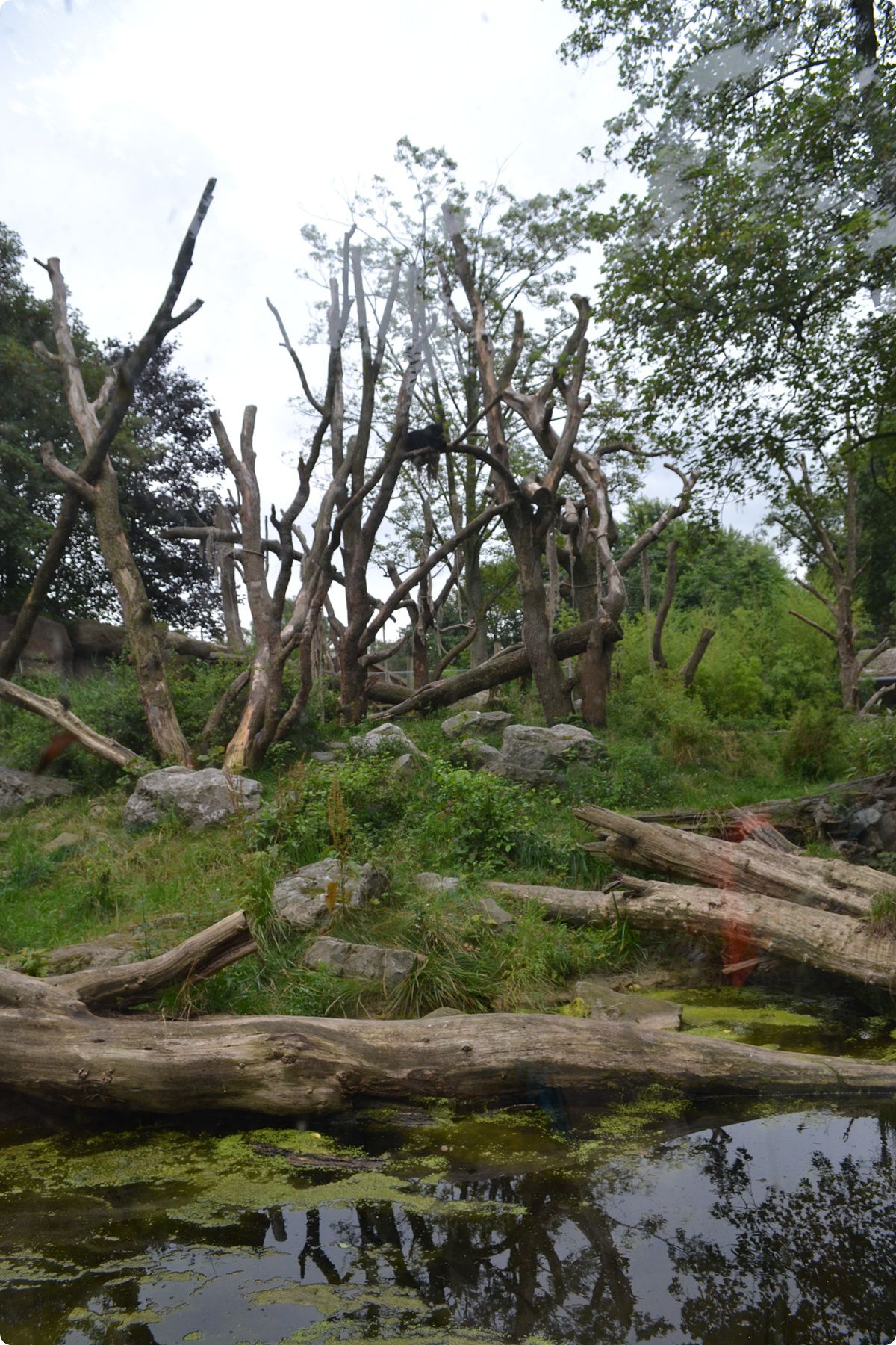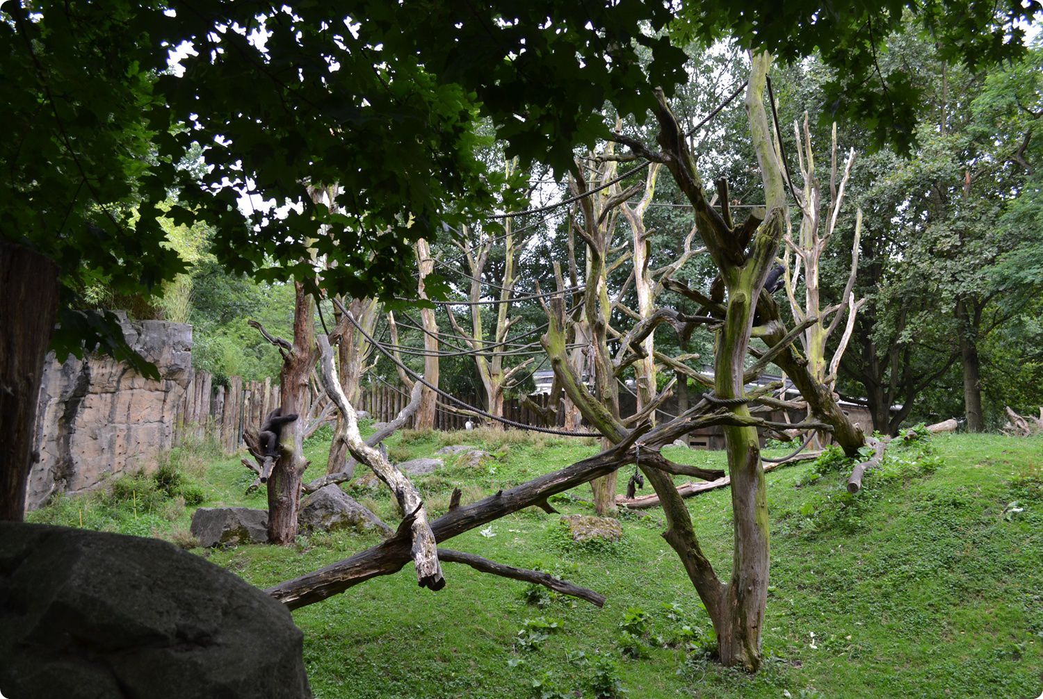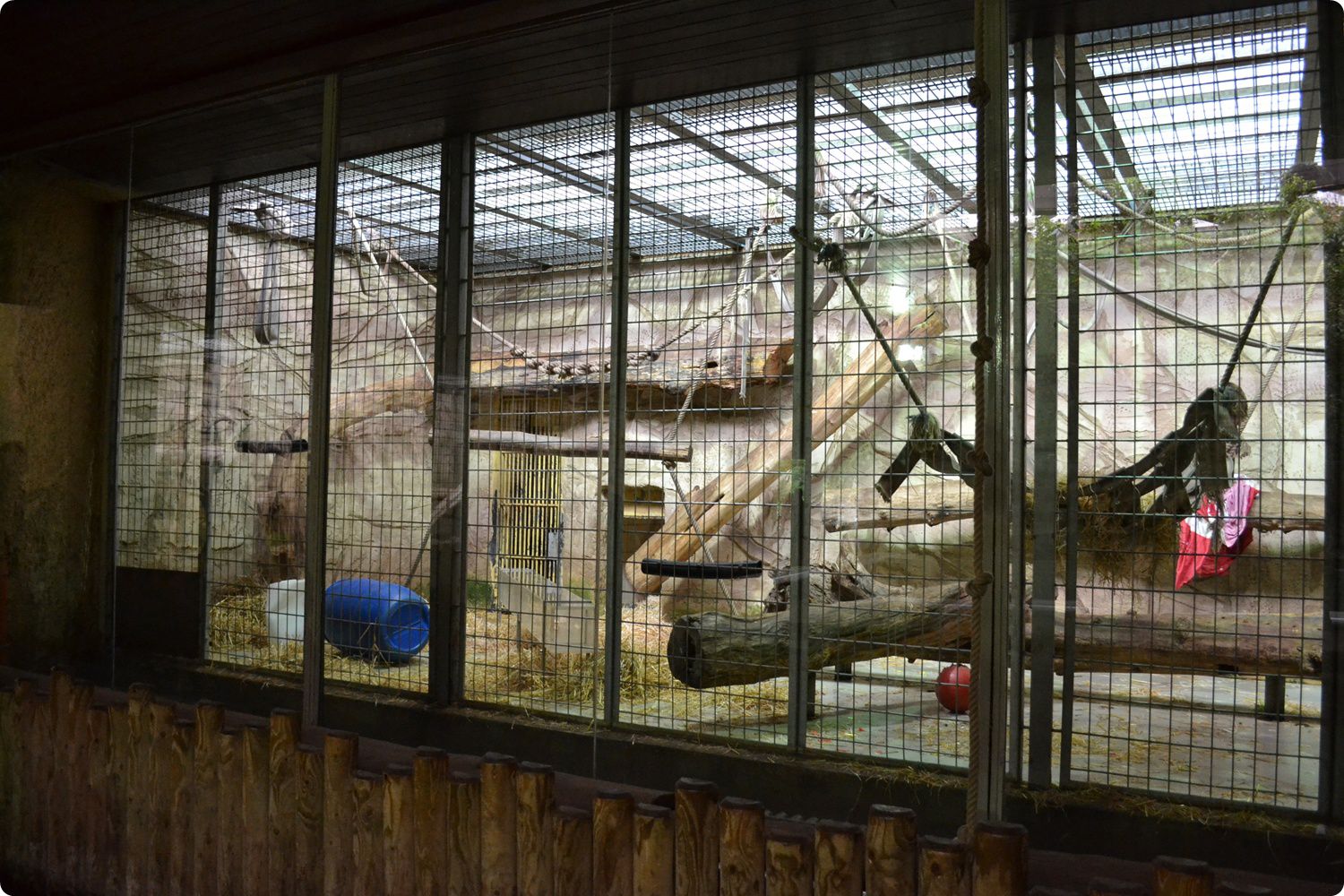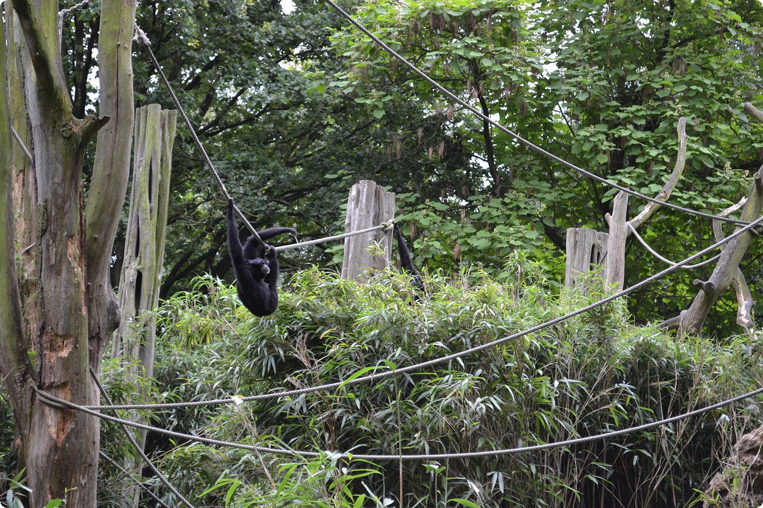 A Duisburgi Állatkertben jelenleg három gibbonfajt is bemutatnak: sziamang, fehérarcú gibbon (Nomascus leucogenys), fürge gibbon (Hylobates agilis), sziamangból és fehérarcú gibbonból több párt is gondoznak több férőhelyen. A képen látható sziamangkifutót leszámítva a gibbonok meglehetősen mostoha körülmények között élnek. A fürge gibbon igazi állatkerti ritkaság: az itt látható hím fajának egyetlen példánya Németországban.