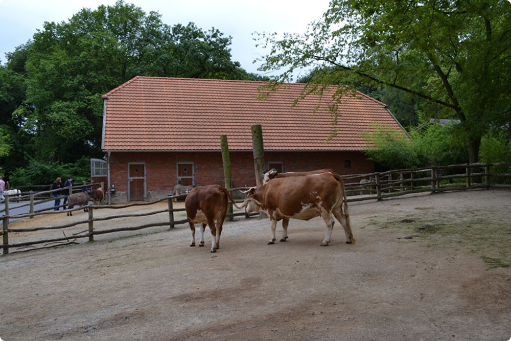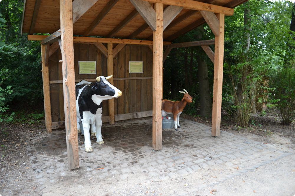 A korábban Przsevalszkij-lovak által használt kifutó helyén 2012-ben nyílt meg a duisburgi állatkert háziállat-bemutatója, mely mellett az intézmény egyik játszótere is megtalálható. Itt kapott helyett az állatsimogató is, melynek belső férőhelyei afrikai kunyhókat idéznek, lakói pedig kameruni törpekecskék és kameruni juhok. A háziállatok bemutatóit több kisebb kifutó és a hozzájuk csatlakozó belső férőhelyek alkotják, némely lakók istállóit a közönség is megtekintheti. Baromfik, disznók, pónik, tehenek, szamarak és alpakák (Lama pacos) láthatók itt, a nyulak kifutójánál a gyerekek mesterséges alagutakba is bemászhatnak, és kis üvegbetekintőkön át figyelhetik az állatok mindennapjait. Bárki kipróbálhatja a tehén-és kecskefejést is: a mű háziállatok tőgyéből fejés hatására vízsugár spriccel ki.