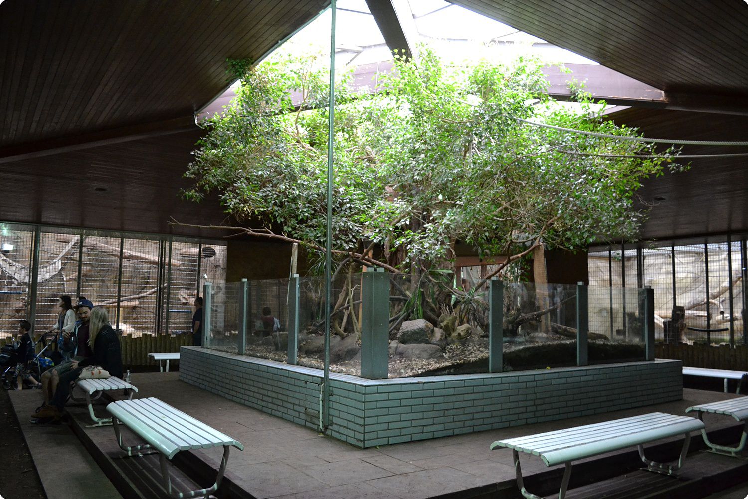 A Ragadozóház épülete az oroszlánok (Panthera leo) kifutójával. Egykor az állatkert több nagyragadozófaja is itt kapott elhelyezést, de olyan kuriózumok is megfordultak itt, mint a földimalac (Orycteropus afer), a tasmán ördög (Sarcophilus harrisii) vagy a lapátfülű kutya (Otocyon megalotis). Ma az oroszlánokon kívül három kisebb testű emlősfaj férőhelyei is itt találhatók. A nagymacskák kifutóját több helyen csak üveg és vizesárok határolja.