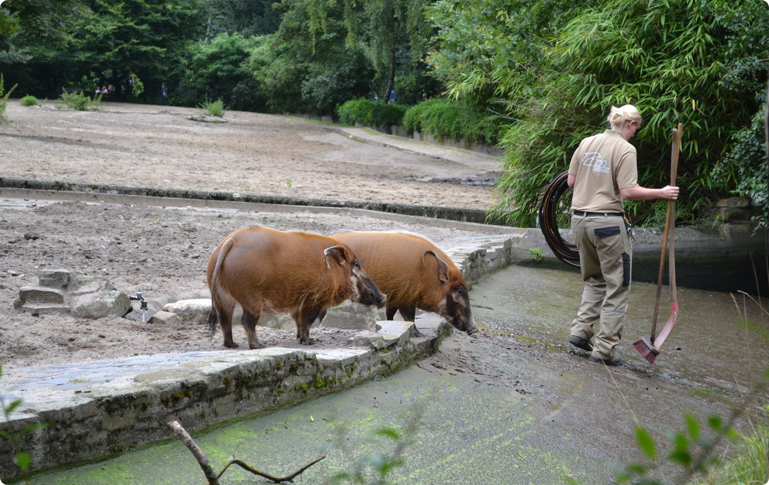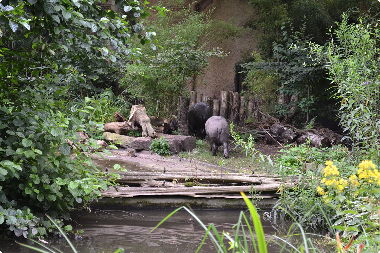 A rendszeresen szaporodó törpevízilovak (Choeropsis liberiensis liberiensis) is az épületben kerülnek bemutatásra. Külső kifutójukat csak néhány fatörzs és pár szál villanypásztor határolja a látogatóktól.