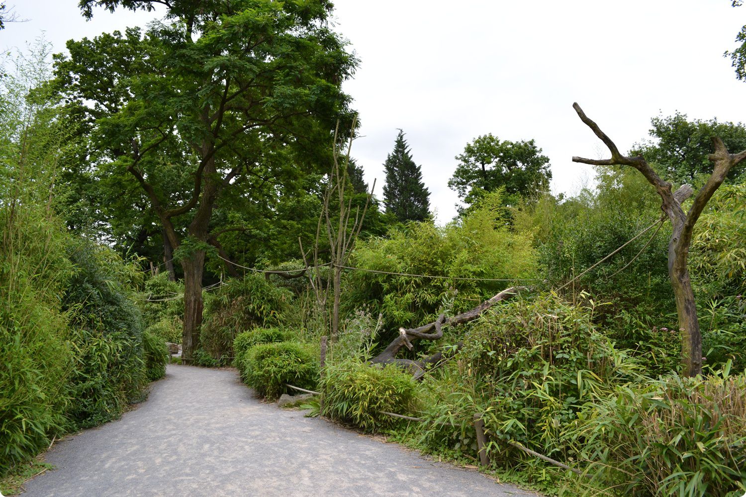 A félmajmok bemutatójának felépítését jelentős adományokkal támogatta a Schauinsland-Reisen utazási iroda, ezért az állatkert tisztelete jeléül Schuainsland-Reisen Lemuren-Inseln-nek (vagyis: Schauinsland-Reisen Makisziget) keresztelte el a kifutót. A látogatók több hídon átkelve léphetnek be a szigetre, ahol szabadon sétálhatnak az állatok között; a makik nem mernek rámenni a hidakra, mivel a beszoktatási időszakban villanypásztort vezettek azokba. A felvételen a Makisziget egyik látogatói ösvénye látható. A Duisburgi Állatkert területén több helyen is igen dús és nagy kiterjedésű bambuszültetvények találhatók.