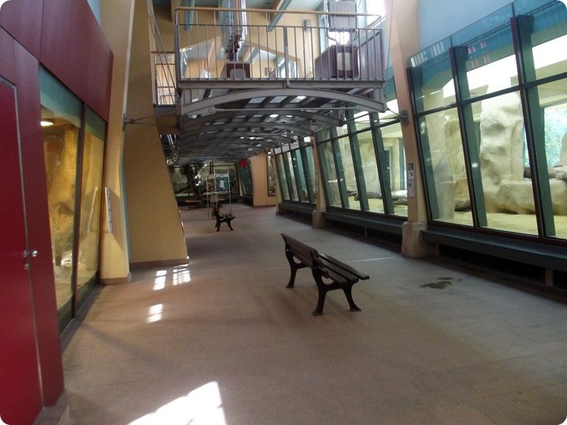 Ha tovább folytatjuk utunkat az állatkertben, rövidesen a pingvinekhez érünk. A hallei pingvinkifutó és medence ugyan nem a legszebb, meglehetősen egyszerű kivitelezésűek, ám mindkettő viszonylag tágas. Igaz ugyan, hogy a pingvinek víz alatti mozgását nem lehet üvegablakokon át megtekinteni, ám a látogatókat ez nem zavarja, ezeknél a népszerű állatoknál mindig sok rajongóba botlunk. Hallében egyébként Humboldt-pingvineket (Spheniscus humboldti) tartanak, a népes csapat remekül szaporodik az állatkertben. A pingvinek melletti kifutót és medencét nutriák, más néven hódpatkányok (Myocastor coypus) lakják. Külön érdekesség, hogy a szemléltető táblák rámutatnak arra, hogy mi a különbség a nutria és a hód között, a két állatot ugyanis sokan összekeverik. Jóval ismertebbek azonban a közeli kifutóban lakó szurikáták (Suricata suricatta). Hallében tágas külső-belső férőhely áll rendelkezésükre, mely egyébként az általam eddig látott szurikáta-kifutók közül az egyik legnagyobb. A szurikáták belső férőhelyéül szolgáló épületben található a pingvinek és a nutriák belső férőhelye is, illetve jelenleg az egyik belső kisemlős-karanténként funkcionál, jelenleg egy urzon, más néven kúszósül (Erethizon dorsatum) vendégeskedik itt. Az állatokat egyébként a vendégek üvegfalon át tekinthetik meg. Az épület mellett egy kis tó és a hozzá tartozó, hálóval fedett kifutó az állatkert idén kelt récefiókái számára óvodaként funkcionál.