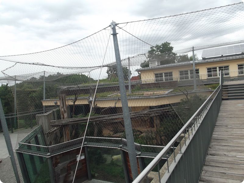 A hangyászokkal és a Kisemlős-házzal szemben lévő terület az állatkert egyik központi része. Az itteni hegyi teraszról gyönyörű a kilátás, játszótér és büfé is található ezen a részen. Az állatkert egyik lenyűgöző látványossága a közelben magasodó, már messziről észrevehető hatalmas madárröpde. A röpde 24 méter magas, benne tavacska és jó néhány lágyszárú növény, sok bokor és fa is található, számos madár ezek ágain költ. A legnépesebb a dankasirálycsapat (Chroicocephalus ridibundus), de egyebek mellett maláj récék (Asarcornis scutulata), kis kócsagok (Egretta garzetta), fekete gólya (Ciconia nigra) és gogók v. más néven kalapácsfejű bakcsók (Scopus umbretta) is laknak itt. Szintén idekerült egy idős és a csapatból kiközösített pingvin, őt azonban nem sikerült látnom látogatásom során.