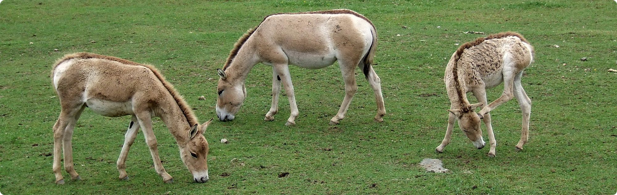 A hiénakifutó melletti területen az ázsiai sztyeppék állataival ismerkedhetünk meg. A kifutók érdekessége, hogy két útvonalon is megtekinthetők, az egyik úton szemmagasságból, a másik útvonalon, egy hegyoldalra felkapaszkodva felülről is megtekinthetők az alattunk legelésző patások. A bemutatók nagyméretűek, füvesek, a bennük élő állatok eredeti őshazáját idézik, mindegyikhez csatlakozik belső férőhely és elkülönítő. A kifutók érdekessége, hogy a domborzati viszonyokból adódóan (akárcsak a hiénakifutó egy része) lejtenek. Három faj kerül itt bemutatásra, a kétpúpú teve (Camelus ferus f. bactrianus), a Przewalski-vadló (Equus przewalskii) és az ázsiai félszamár egyik alfaja, a kulán (Equus hemionus kulan). Mindhárom csapatban rendszeresen születnek utódok, amely különösen a veszélyeztetett kulánok és vadlovak esetében fontos. Utóbbiak esetében már volt rá példa, hogy a Prágai Állatkert segítségével néhány Kassán született vadlovat visszatelepítettek a faj eredeti származási helyére, a mongol sztyeppékre.