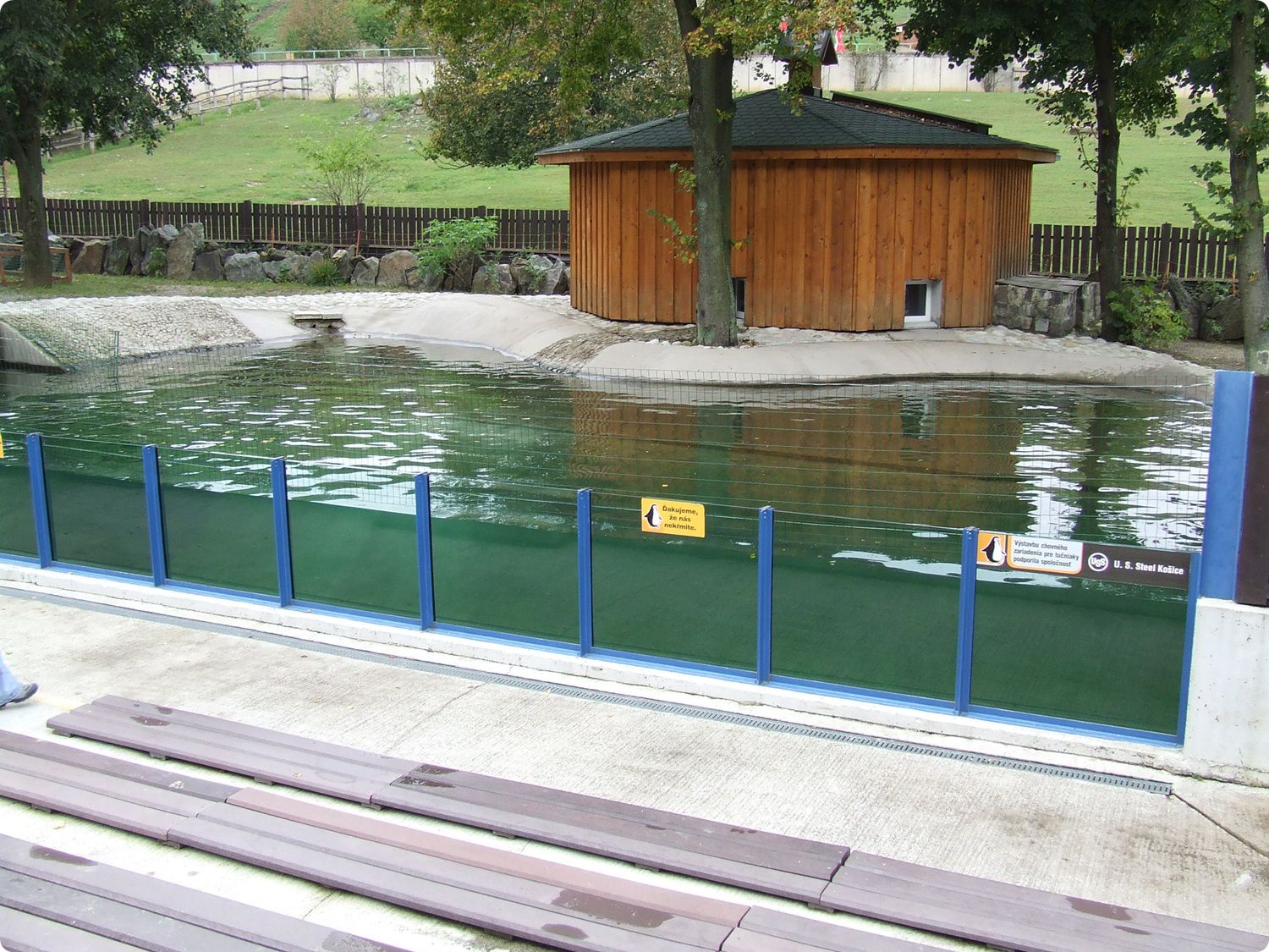 A tigris-és hiénakifutóval szemben található az állatkert kisebbik vízimadártava, melynek felépítéséhez az egyik patak vizét duzzasztották fel. A tavacska legimpozánsabb lakói a rózsás gödények (Pelecanus onocrotalus), de éppúgy láthatók itt mandarin récék, üstökös récék (Netta rufina), tőkés récék (Anas platyrhynchos), házi kacsák, kanadai ludak (Branta canadensis), apáca ludak (Branta leucopsis) és nyári ludak (Anser anser) is. Számomra külön érdekesség volt megfigyelni a kínai hattyúlúd (Anser cygnoides) vad alakját, mely fogságban jóval ritkábban látható, mint a hozzá hasonló, ám nagyobb méretű és nagyobb bütyökkel rendelkező háziasított forma. A vízimadarakon kívül három kapibara, más néven vízidisznó (Hydrochoerus hydrochaeris) is látható a bemutatóban.