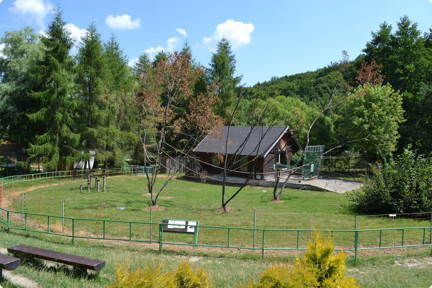 A kifutó hegyoldalon elnyúló, növényekkel dúsan beültetett bemutató, ahol több betekintő üvegfelület és kis leskunyhó épült a látogatók számára. Hiába, a hiúzpár remekül el tud itt rejtőzni, igaz, nekik a farkasokkal ellentétben belső férőhelyük is van.