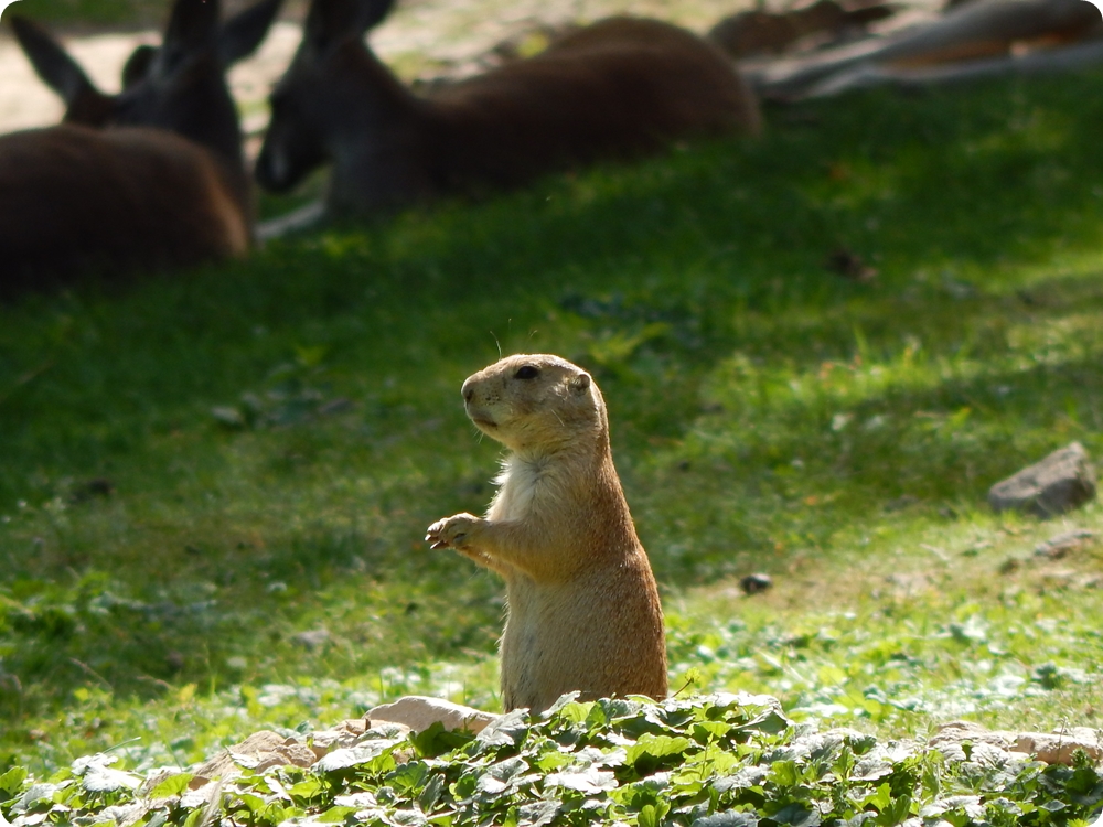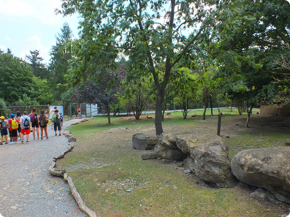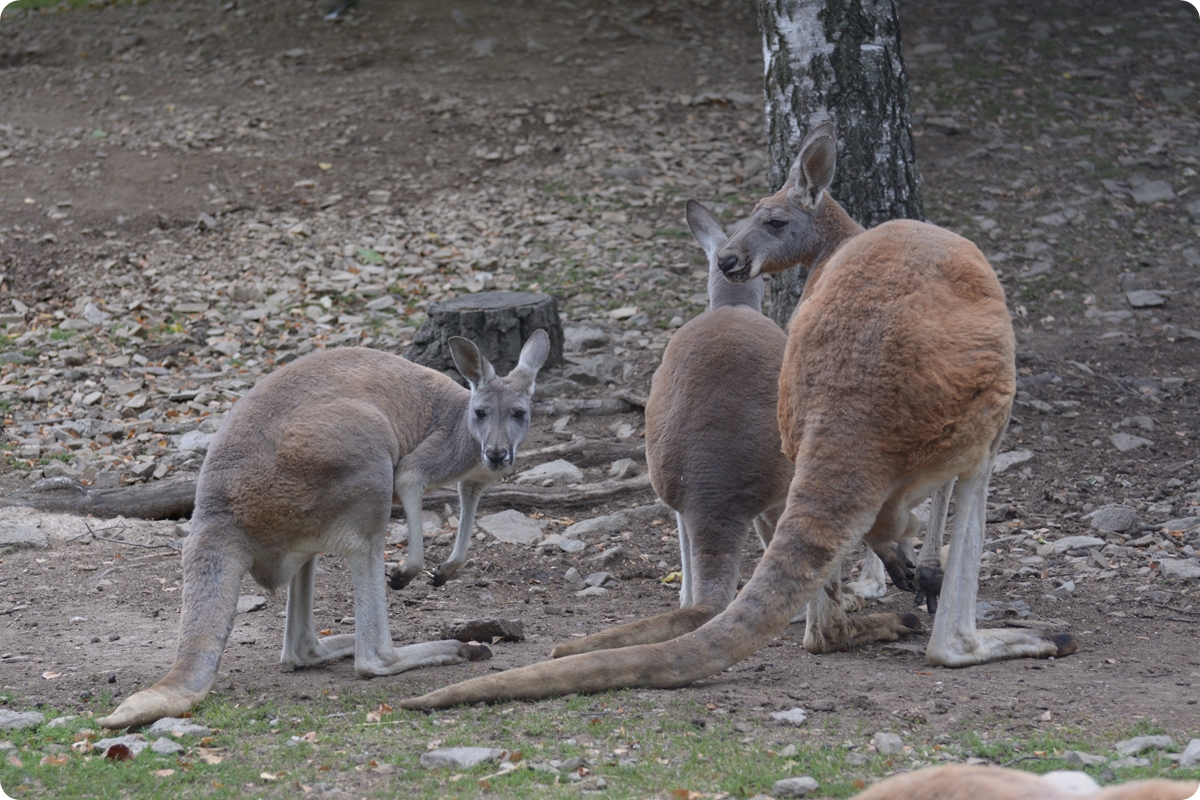 Nagyon hangulatosra sikerült a vörös óriáskenguruk (Osphranter rufus) és az állatkertben viszonylag ritkán bemutatott fehértorkú vagy Parma-kenguruk (Notamacropus parma) közös kifutója: bár sok kertben találkozhatunk olyan megoldással, ahol a látogatók a kenguruk közt sétálhatnak, az meglehetősen ritka, hogy a nagy testű óriáskengurukkal tegyék. A nagy csapat állat láthatóan nyugodtan tűri a közelükben áthaladó tömeget. Természetesen a kifutó mérete azt is lehetővé teszi, hogy a kenguruk számukra biztonságos távolságba vonuljanak a látogatóktól. Kissé „tájidegen” módon – a szintén Ausztráliát képviselő emuk (Dromaius novaehollandiae) mellett - a kenguruk lakótársai feketefarkú prérikutyák (Cynomys ludovicianus): a kis rágcsálók itt is-ott is felbukkannak a békésen heverésző kenguruk között.