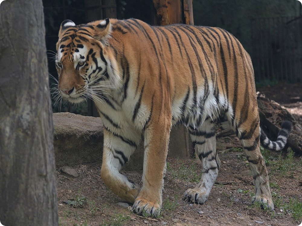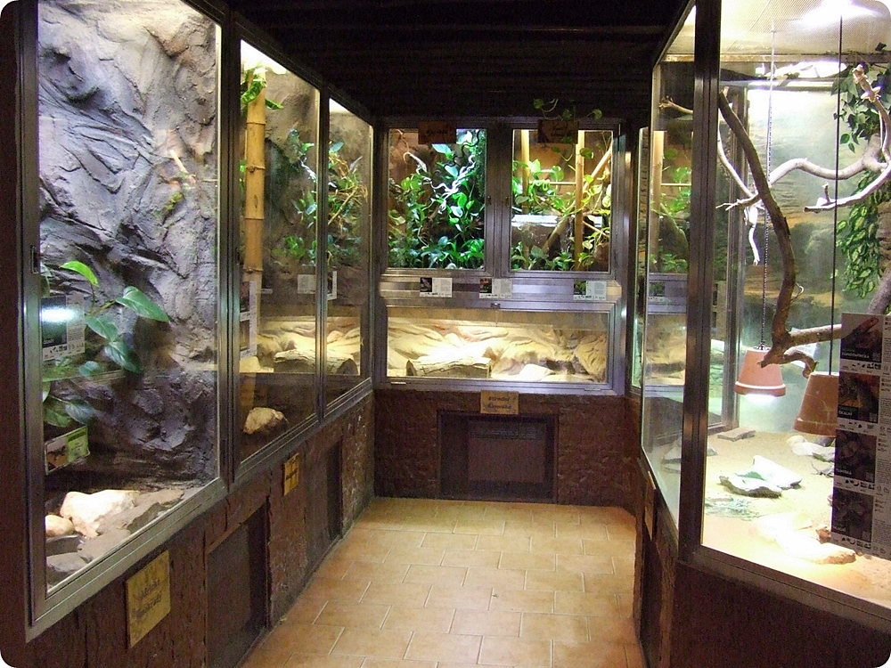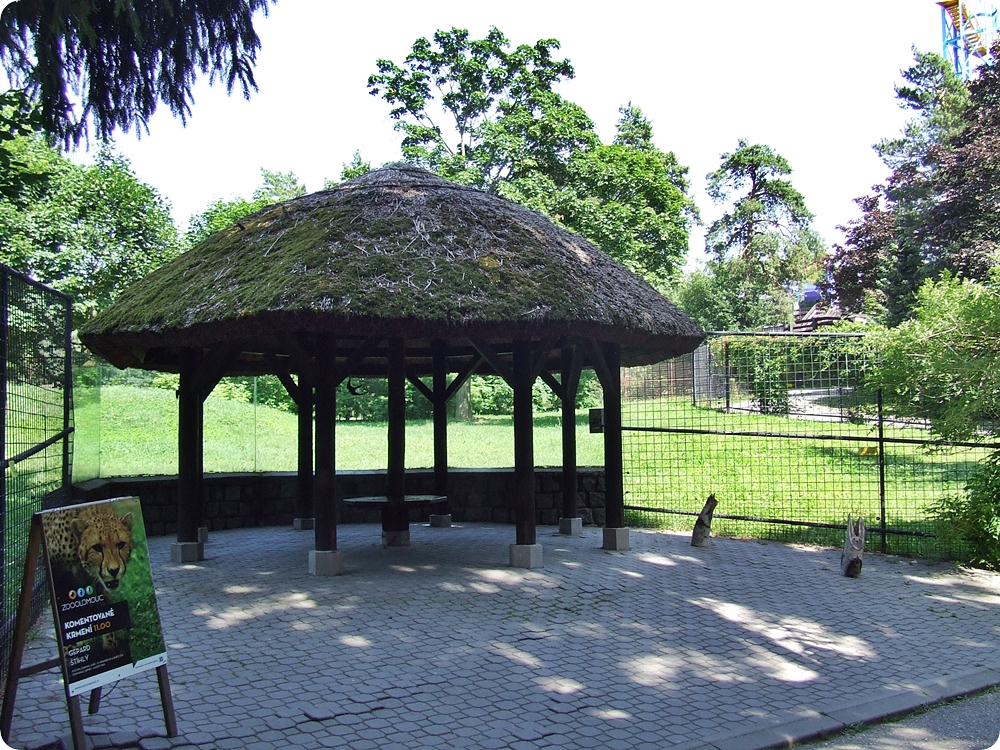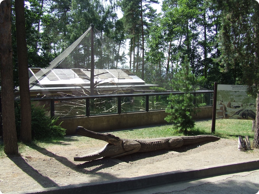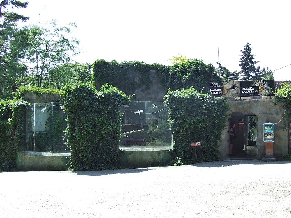 A Ragadozók Pavilonja (az idősebb korosztály számára talán ismerős, azonos című csehszlovák film forgatási helyszíne) történetét tekintve az állatkert egyik legrégebbi épülete, magját 1968-ban adták át, azonban az azóta eltelt idő alatt számtalan átépítésen és bővítésen esett át, a ’80-as években pedig Csehszlovákia legmodernebb ilyen jellegű épületének számított. Ekkor készült el a ragadozók belső kifutóival szemközti oldalon a kisebb-nagyobb akváriumokból és terráriumokból álló kiállítás is. Mai formáját a 2001 és 2003 között végzett átalakítással érte el, amikor is az állatokat a látogatóktól elválasztó rácsokat üvegre cserélték, illetve a ház tetején világítóablakokat helyeztek el. Az eredetileg itt található kisebb terráriumok a Zsiráfházba költöztek, így lehetőség nyílt egy nagy, 42.000 literes tengeri akvárium létrehozására, melyben a fő szenzációt jelentő feketeúszójú szirticápa (Carcharhinus melanopterus) és fehéruszonyú szirticápa (Triaenodon obesus) mellett több mint száz korallszirti hal úszkál. Az épület végében nagyszerű bemutatót alakítottak ki a tompaorrú krokodilok (Osteolaemus tetraspis) számára. A ház fő szenzációját azonban mégis a ragadozók jelentik. Az üvegen át megtekinthető, nem túl nagy, de elfogadható méretű, műsziklával dekorált férőhelyeken binturongok (Arctictis binturong), a jaguár (Panthera onca) normál színű és fekete színváltozata, illetve a berber oroszlánok (Panthera leo leo) élnek. Utóbbi tartása és tenyésztése komoly hagyományokkal bír Olmützben, rendszeresen születnek kölykök, ott jártunkkor is szerencsénk volt egy, a látogatók számára mindössze néhány napja bemutatott kölyökhöz. Az épülethez csatlakozó, üvegtáblákon át megtekinthető külső kifutók sajnos nem túl tágasak, de a lehetőségekhez képest szépen berendezettek. A szibériai tigrisek (Panthera tigris altaica) egy kisebb és egy nagyobb külső kifutót is birtokolnak, melyek közül a nagyobban kisebb medence is rendelkezésre áll, a látogatók számára ablakon keresztül megtekinthető belső férőhelyük a két külső között található. Érdekesség, hogy a hím, Amur „magyar” ősökkel rendelkezik, 2012-ben született Nyíregyházán, akárcsak a 2009-es születésű jaguár, Inti. A Ragadozók Pavilonjától kissé távolabb két további macskaféle kapott helyet. A dél-afrikai gepárdok (Acinonyx jubatus jubatus) tágas, füves kifutóban élnek, sőt már szaporodtak is. Az egyébként vasrácsos kerítéssel határolt férőhely kis nádfedelű kunyhót utánzó, üvegfalú betekintőn keresztül szemlélhető meg igazán zavartalanul. Vele szemben a kárpáti hiúzok (Lynx lynx carpaticus) modern, új kifutója található. Mivel a kerítés a 2019-es vihar során a rádőlő fáktól jelentősen megrongálódott, az állatok egy ideig nem használhatták a területet, mára viszont újra birtokba vehették azt. A közelben találjuk a betonfalú egykori medveárkot, amely a közelmúltban rövid időre újra egykori lakóinak adhatott otthont: két európai barnamedvét (Ursus arctos arctos) koboztak el a hatóságok, miután engedély nélkül hozták be őket az ország területére. A két fiatal állat először a Prágai Állatkertbe került, onnan költöztek Olmützbe, mielőtt továbbutaztak volna végleges helyükre, egy medvemenhelyre.
