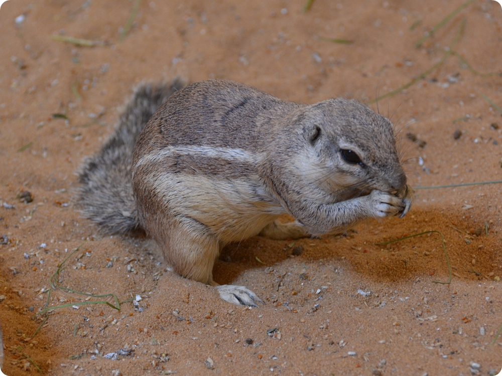 Az Afrika Szafarinál már említett nyársasantilopok és zsiráfok kifutóit gyalogosan is megszemlélve a kert egyik legújabb, 2017-ben átadott létesítményéhez jutunk: a Kalahári Pavilonhoz. A szépen berendezett kifutókban és terráriumokban olyan fajokat találunk, mint a piroscsőrű szövőmadár (Quelea quelea) és a málinkó-szövőmadár (Ploceus cucullatus), a mindig népszerű szurikáta (Suricata suricatta), a fokföldi földimókus (Xerus inauris), a fokföldi szirtiborz (Procavia capensis) vagy a félhomályos megvilágításnak köszönhetően a nappali órákban is jó eséllyel megfigyelhető földimalac (Orycteropus afer). Számos hüllőfaj is él itt természetes élőhelyüket utánzó terráriumokban, említhetném a ritkán látható fokföldi korallkobrát (Aspidelaps lubricus) vagy a mindössze öt európai állatkertben bemutatott sárgatorkú páncélosgyíkot (Gerrhosaurus flavigularis). A legújabb lakó se akárki: 2018 óta ugyanis a méhészborz (Mellivora capensis) mindössze két európai állatkertben bemutatott dél-afrikai alfaja (Mellivora c. capensis) is látható a házban. A ház oldalában több kisebb külső kifutó is helyet kapott.