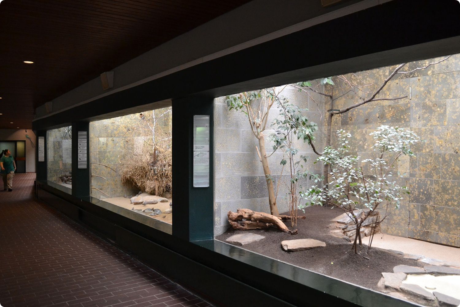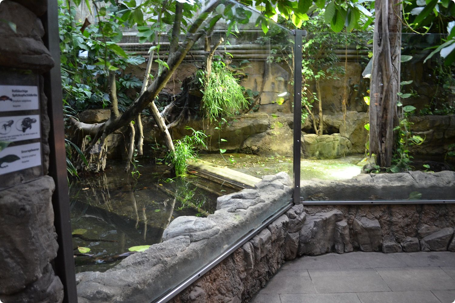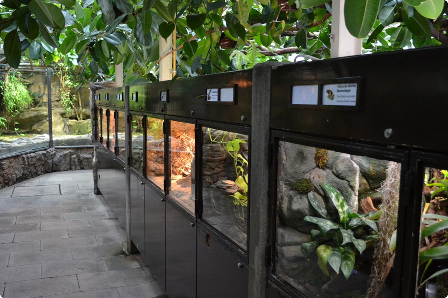 Az Akvárium-Terrárium másik végében került kialakításra a Wuppertali Állatkert terrárium-bemutatója. A képen a részleg látogatói folyosója látható.