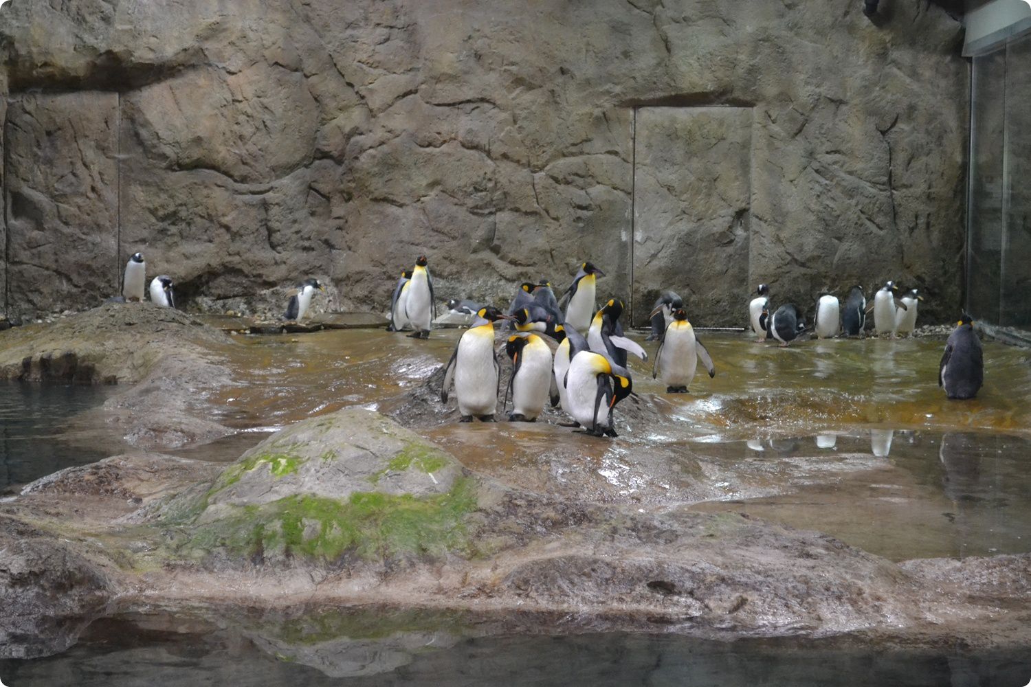 A pápaszemes pingvinek bemutatója, valamint a Pingvinház belső terei
