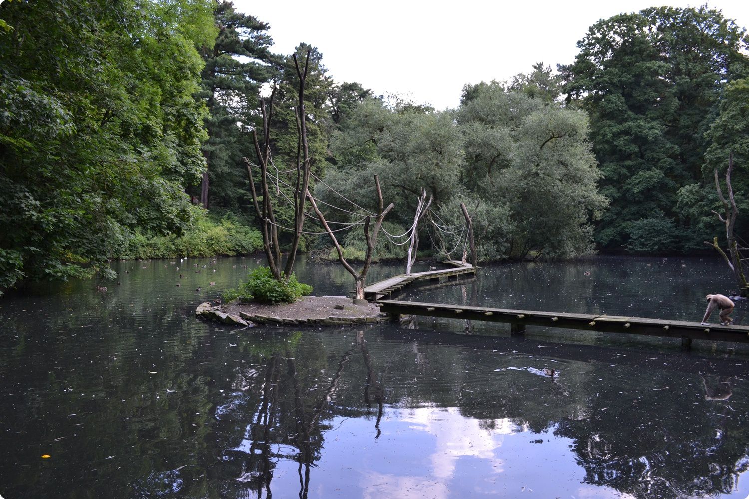 A fehérkezű gibbonok szigetei az egyik vízimadártavon kerültek kialakításra. A főemlősök több, kisebb-nagyobb szigetet használhatnak, melyeket kötelek és pallók segítségével közelíthetnek meg.