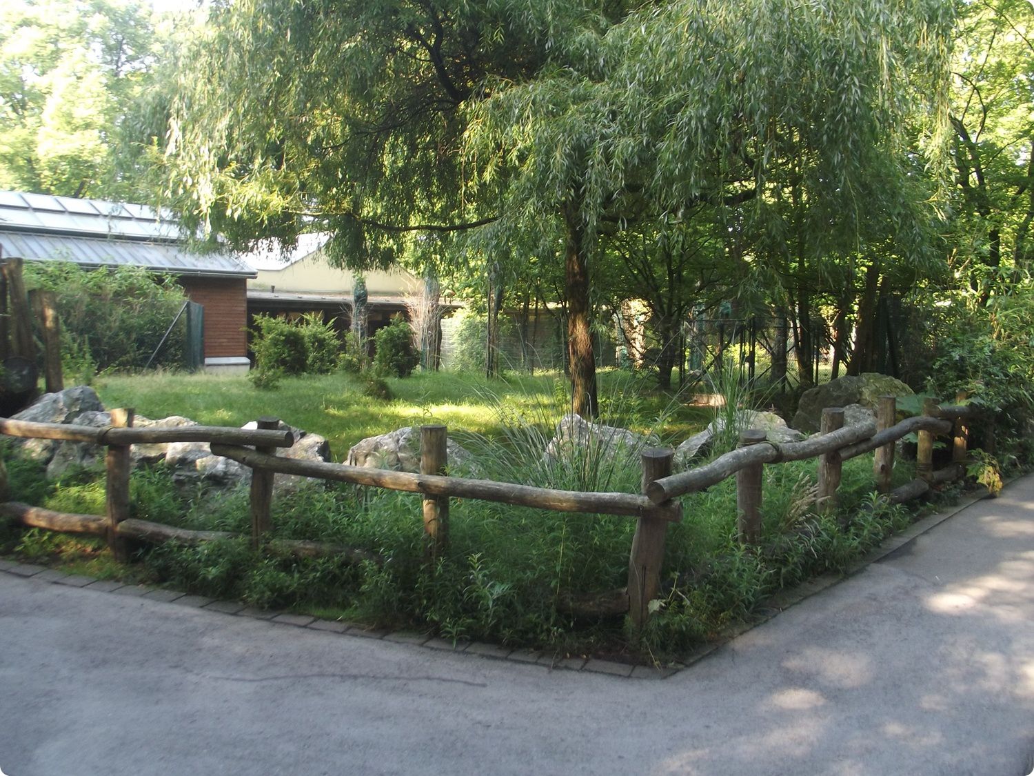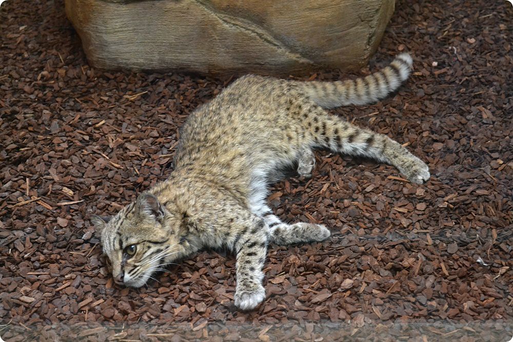 A Kismacskaház külső férőhelyei és lakói: Geoffroy-macska (jobbra), homoki macska és ománi vadmacska. Bár az épületben ennél korábban több faj került bemutatásra, az alacsonyabb fajszám lehetővé teszi, hogy több férőhely összenyitásával a megmaradt egyedek nagyobb kifutókban kerülhessenek bemutatásra.