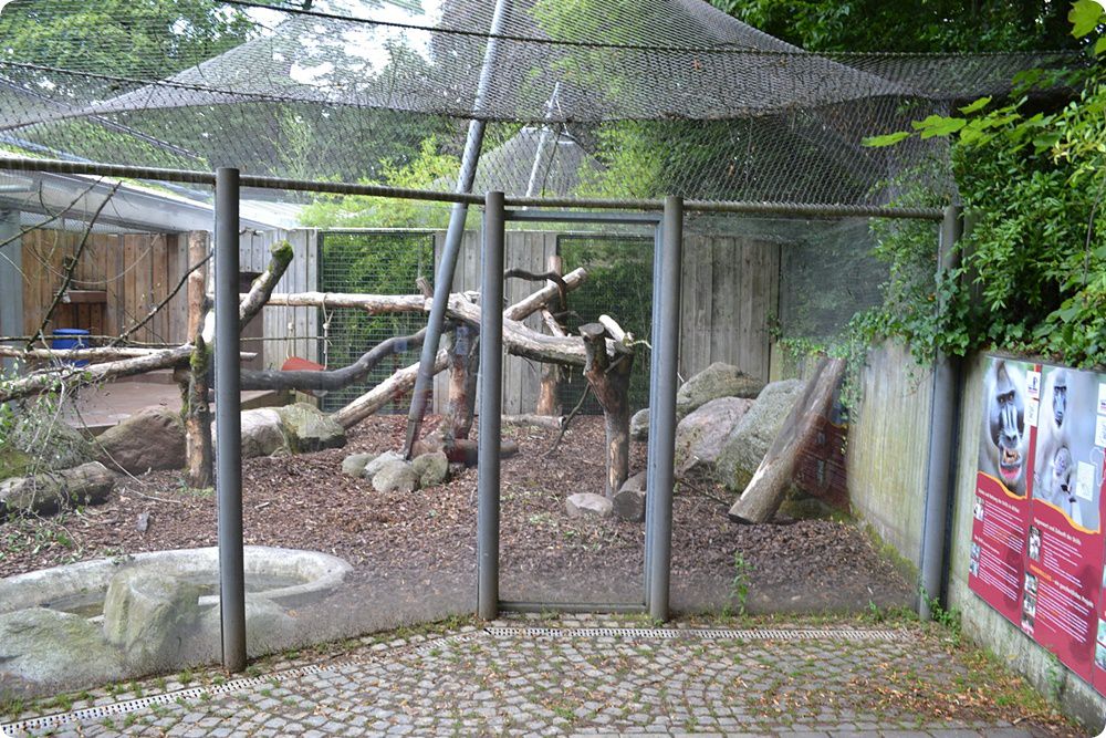 A Majomház bővelkedik ritka fajokban, vörös varik (Varecia rubra), drillek, oroszlánfejű makákók, álarcos langurok (Trachypithecus obscurus), aranyhasú mangábék (Cercocebus chrysogaster) és barnafejű pókmajmok (Ateles fusciceps rufiventris) kerülnek itt bemutatásra, sőt, a korszerűtlen körülmények ellenére a drillek kivételével az összes faj rendszeresen szaporodik. A felvételen a drillek külső kifutója látható. Annak ellenére, hogy a ritka páviánok és a szomszédos oroszlánfejű makákók kifutóját néhány éve újították fel, mindkét férőhely viszonylag szűkös alapterületű. A drillek korábban rendszeresen szaporodtak az állatkertben, jelenleg azonban két kifejlett hím képviseli a fajt Wuppertalban.