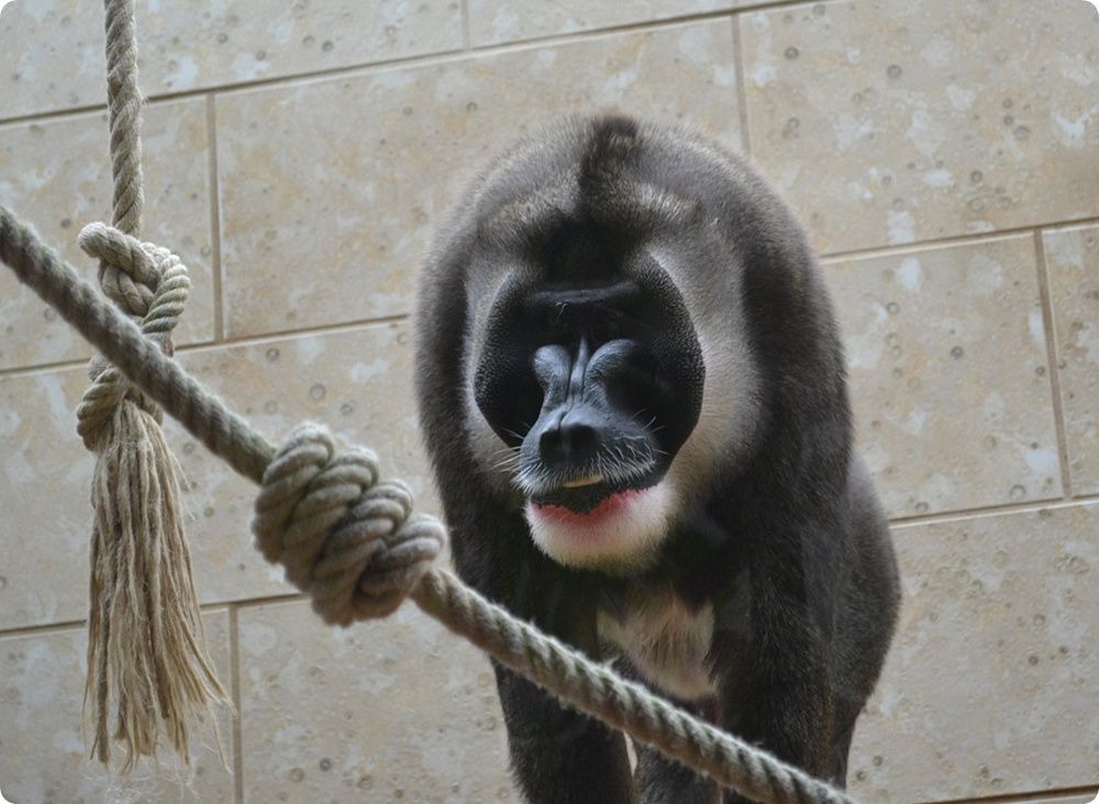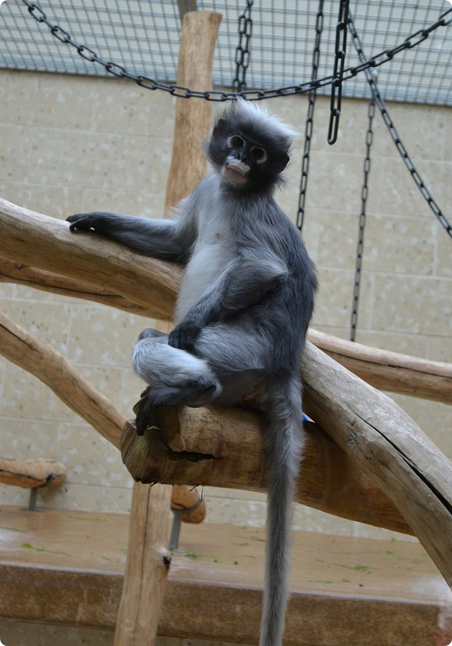 Álarcos langur és belső férőhelye: a faj Németországban jelenleg csupán Wuppertalban kerül bemutatásra.