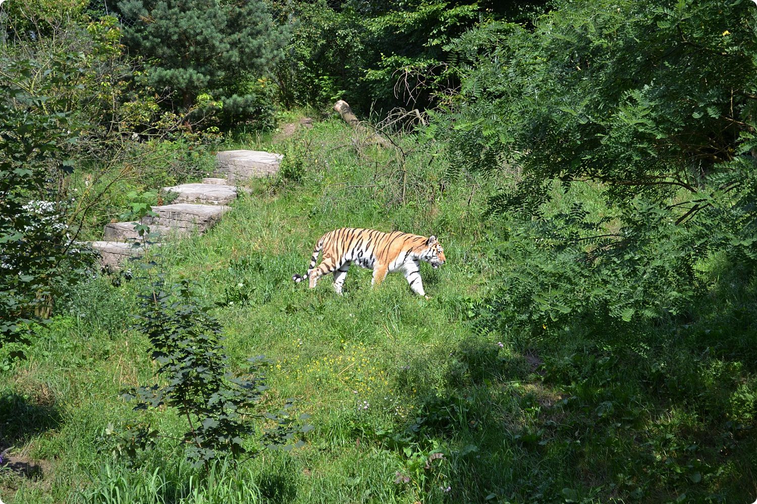 Szibériai tigrisek bemutatójához egy igen nagyméretű elkülönítő is tartozik, mindkét kifutóban található medence. Bár az állatkertben korábban rendszeresen szaporították a tigriseket, jelenleg egy négyfős hímcsapatot gondoznak Wuppertalban. Korábban szumátrai tigriseket (Panthera t. sumatrae) is gondoztak az intézményben, sőt, 2010 és 2012 között egyszerre került bemutatásra a két alfaj. Ugyanis ekkor vendégeskedett itt a Frankfurti Állatkert mesterségesen nevelt nőstény szumátrai tigriskölyke, akit Wuppertalban egy szintén ember által nevelt nőstény szibériai tigriskölyökkel tartottak közös kifutóban.