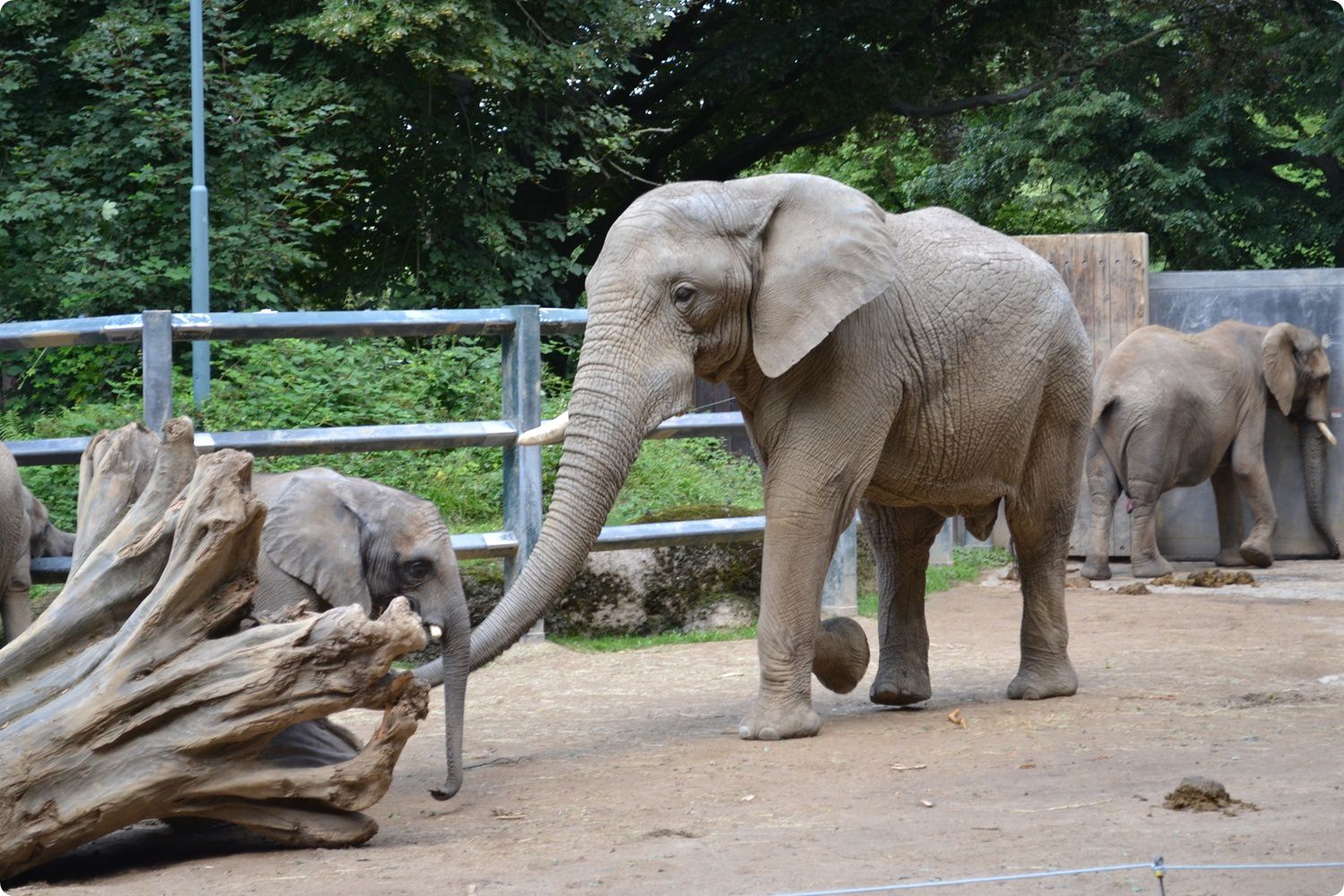 Afrikai elefántok és férőhelyük: az Elefántházhoz tartozó külső kifutók közül a nagyobbik a tehenek és borjaik, míg a kisebbik a bika elhelyezésére szolgál. Mint az a felvételeken is látható, az elefántbikát időről-időre összeengedik a tehenekkel és a borjakkal. Az Elefántházban medence, nagy közösségi tér és több elkülönítő boksz is található. Annak ellenére, hogy a bemutató immár 20 éves, az általam eddig látott elefántházak egyik legjobbjának számít. Sajnos még napjainkban sem megoldott sem az ázsiai, sem az afrikai elefánt esetében a fajok alfajtisztán való tenyésztése, gyakran találkozhatunk keverék egyedekkel, illetve több alfajhoz tartozó egyedekből álló csoporttal a kontinens állatkertjeiben. Wuppertalban azonban csak alfajtiszta egyedeket gondoznak, az afrikai szavannaelefánt törzsalakját, a dél-afrikai elefántot (Loxodonta a. africana) tartják. A csapat alapító egyedei, egy bika és három tehén, az új Elefántház megnyitójára, 1995-ben érkeztek, néhány éves fiatalokként. Mivel mindannyian dél-afrikai vadbefogásból származnak, igen értékes tenyészállatok. Wuppertalban rendszeres a szaporulat, a négy kifejlett elefánt mellett hat fiatal példány, illetve borjú, tehát összesen tíz elefánt lakja a bemutatót.