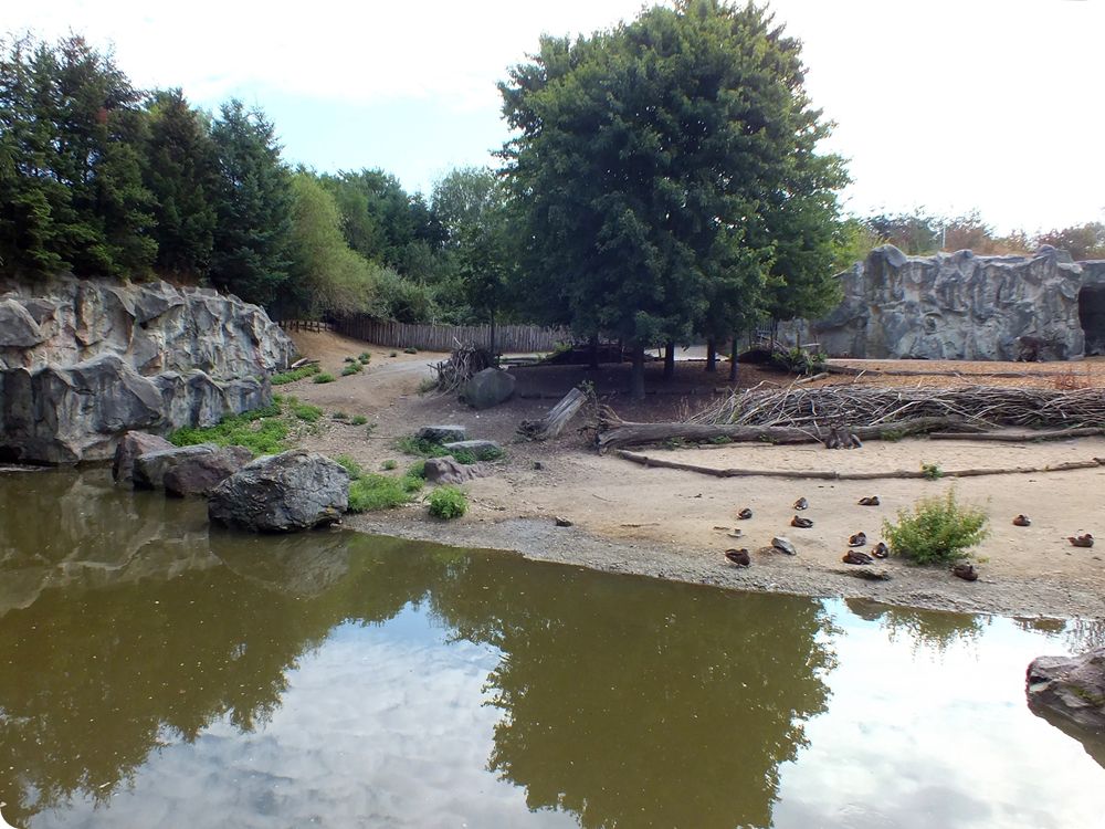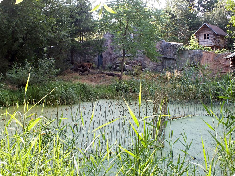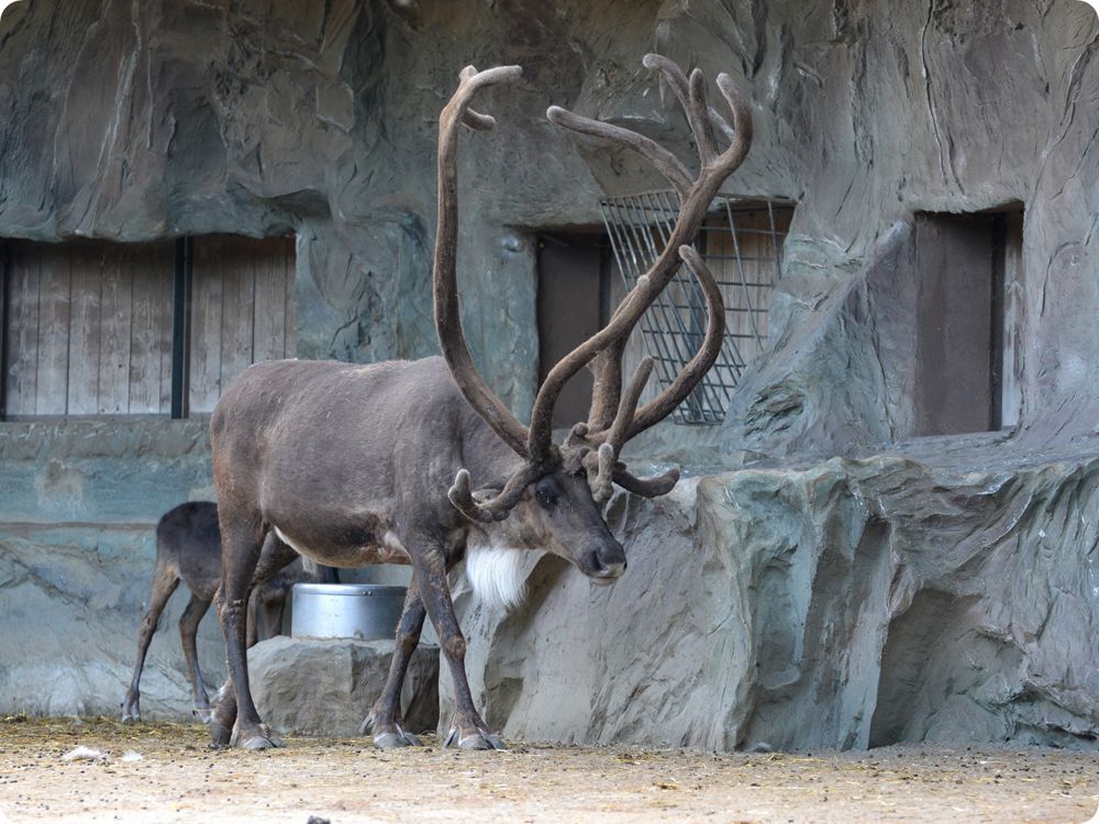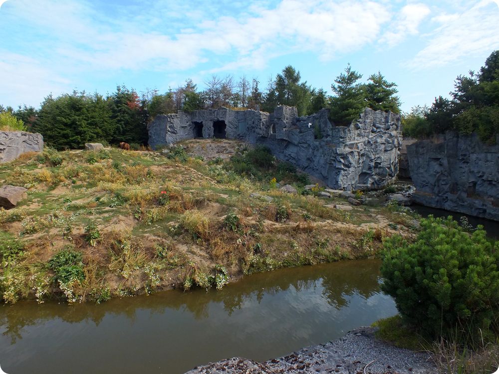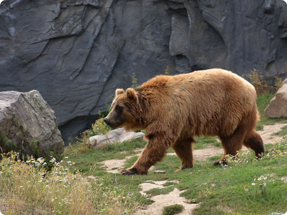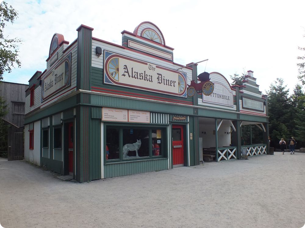 Az Alaszka Diner nevű, autentikus küllemű étterem mellett elhaladva elhagyjuk a tajgaövezetet, és a tundra zónájába érkezünk. Itt a rénszarvasok (Rangifer tarandus) terjedelmes, több pontról megfigyelhető, műszikla hátterű kifutójára tekinthetünk. A hatalmas csapatban több nagy bika is van, egyikük agancsa talán a legnagyobb, amit valaha rénszarvasnál láttam. A nagy vizesárok, mely a kifutót egyik oldalról határolja, itató- és fürdőhelyként is szolgál az állatoknak, emellett itt élnek a kert kanadai lúdjai (Branta canadensis) is. A rénszarvasok műsziklákkal díszített élőhelye már előre vetíti a következő növényzeti övezetet: a sziklás hegyvidéket. Két, egyenként 1500 m2-es kifutóban két barnamedve-alfajt mutatnak be: az európai barnamedvét (Ursus arctos arctos) három nőstény, míg a szomszédságukban élő hatalmas testű kamcsatkai barnamedvét (Ursus arctos beringianus) két hím képviseli. Valaha a kamcsatkai medvék mellett Kodiak-medvéket (Ursus arctos middendorffi) tartottak, az elképzelés az lett volna, hogy a Bering-szoros két oldalán élő, hatalmas testű alfajokat egymás mellett mutatják be. Sajnos a Kodiak-medvék kiöregedtek és elpusztultak, emléküket csak a róluk elnevezett Kodiak Falls nevű mesterséges vízesés őrzi, így az Alaszka-bemutatóban egy európai és egy ázsiai barnamedve-alfaj látható. Legnagyobb sajnálatomra a Kodiak-medve gyakorlatilag egész Európából eltűnt, jelenleg egyetlen hím példányáról tudok, aki egy svéd medvepark lakója. A kamcsatkai medvék társbérlői korábban sarki rókák (Alopex lagopus) voltak, azonban a társítás a kifutó nagy mérete ellenére se vált be: a kis testű rókák állandó stresszben éltek a hatalmas medvék árnyékában, így a sarki rókák tartásáról lemondtak. A két medvekifutó hasonló kialakítású: nagy terület és alacsony, gyepszerű növényzet jellemzi. A medvék szökését messzemenőkig valósághű kialakítású műszikla falak hivatottak megakadályozni. Különösen látványossá teszik a bemutatót a gyors folyású patakot imitáló vizesárkok, melynek zúgói és vízesései (a legnagyobb 6 m magas, és másodpercenként 1800 l víz zúdul le rajta) valódi alaszkai tájképet idéznek elénk: a patakmederben táplálékot keresgélő hatalmas medvék akár a Katmai Nemzeti Park grizzlyjei is lehetnének. A kifutókra a vizesárok felett kialakított szikláról, a szikla barlangszerű járataiban kialakított betekintőablakokon keresztül, illetve a kis bátorságot igénylő függőhídról is remek rálátás nyílik. A két medvealfaj kifutója között egy barlangszerű járaton keresztül vezet az út: a Sam bányája nevet viselő látványosság egy alaszkai aranybányát imitál, melyben gombnyomásra maga Sam is megjelenik, hogy hologram formájában riogassa az arra járó gyerekeket.