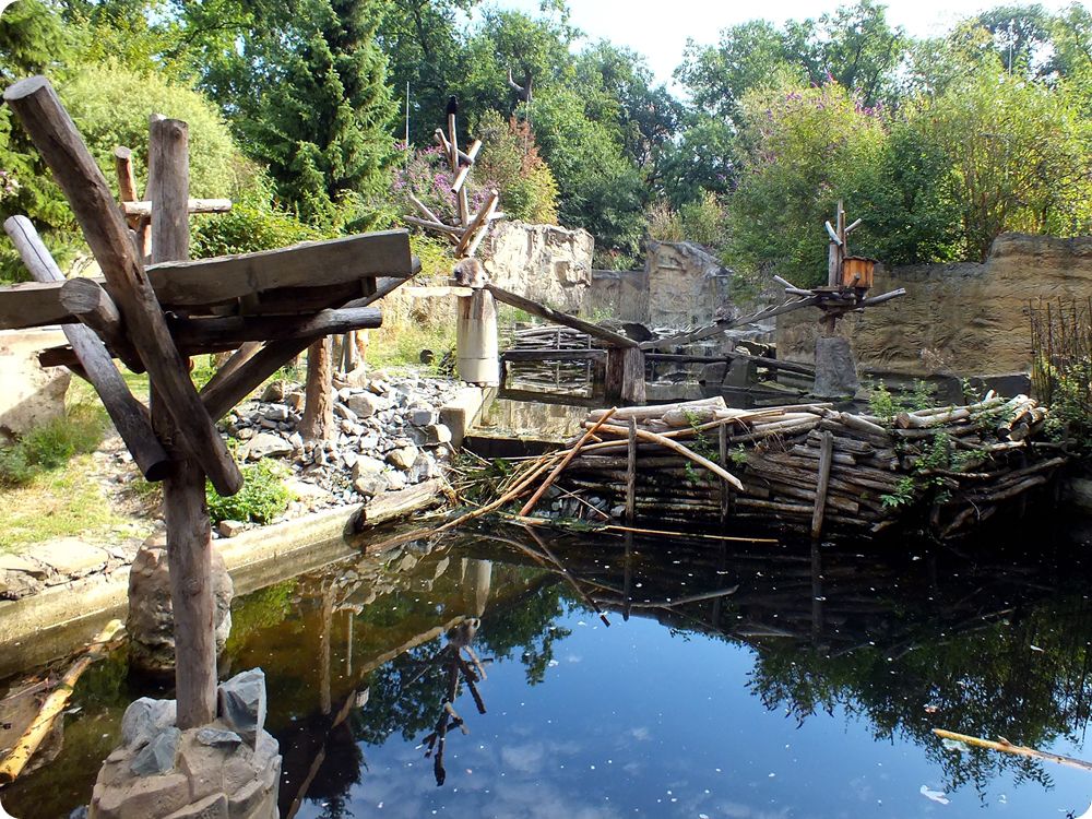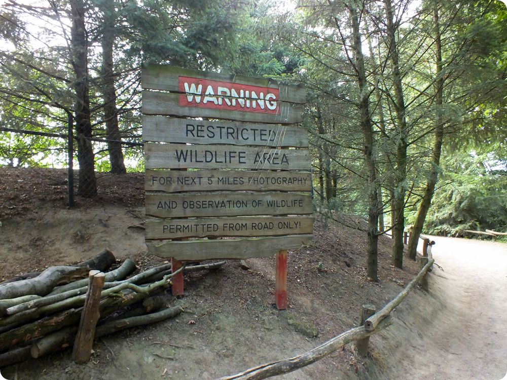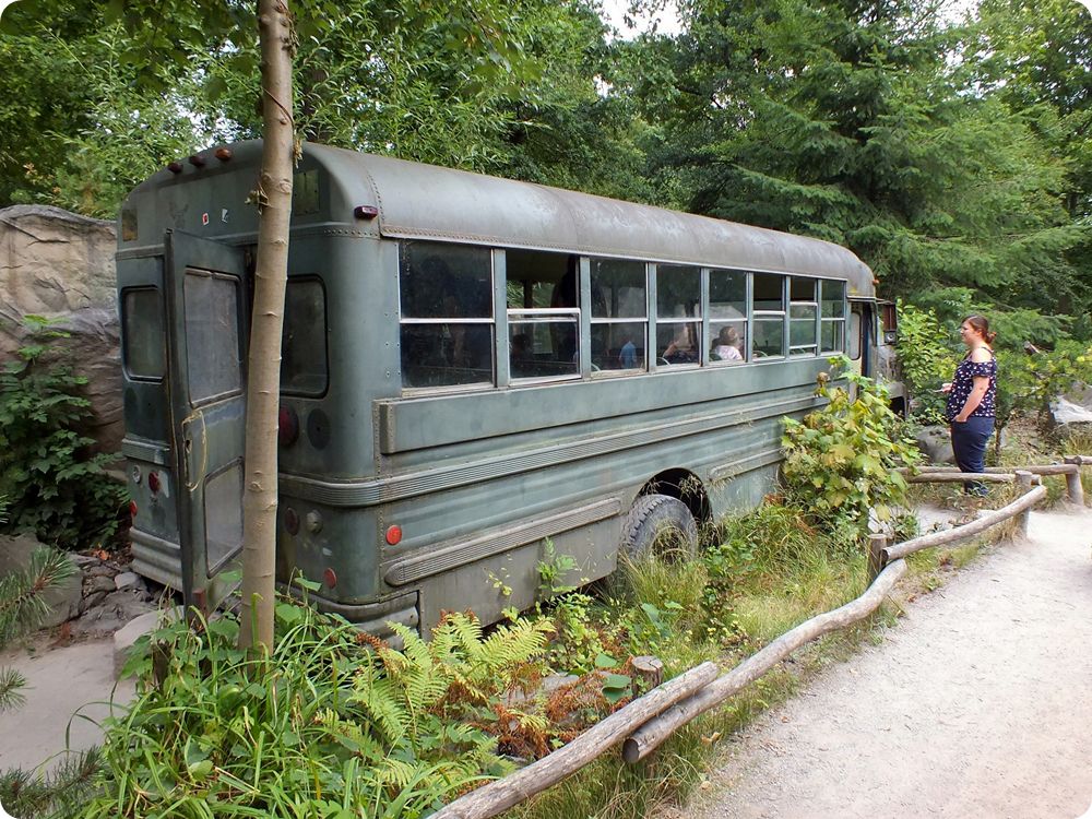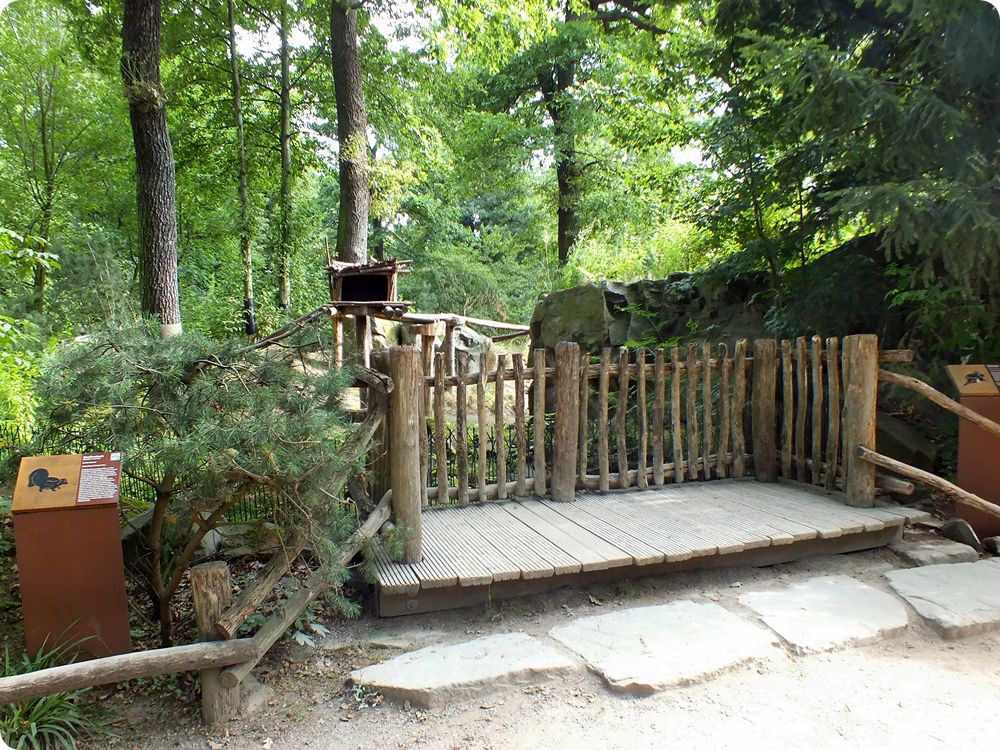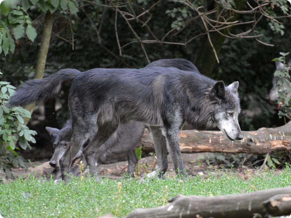 A jegesmedvék kifutói után az ösvény visszavezet a mérsékelt övi esőerdő növényzeti zónájába. A Farkasok Ösvényét követve egy észak-amerikai vadőrállomáshoz jutunk, melyből üvegablakokon egy állatkertben ritkán látható farkasalfaj kifutójára pillanthatunk: a keleti erdeifarkas (Canis lupus lycaon) kilenc példánya tágas, erdős területet birtokol. Az állatokat egy magaslesre felkapaszkodva is megszemlélhetjük, a legjobb rálátásra mégis a kifutó hosszanti oldalán futó vizesárok felett van lehetőség. Itt találjuk a már említett kanadai vidrák (Lontra canadensis) mesterséges patakmedrét. A két állat európai rokonánál sokkal aktívabb a nappali órákban is, így van esélyünk a medencéjükben úszkáló vagy fel-alá rohangáló állatok megfigyelésére. Egy orvvadásztábor és a jávorszarvasok másik oldalról már megtekintett kifutója mellett vezető hídon pedig már el is hagyjuk Alaszkát.