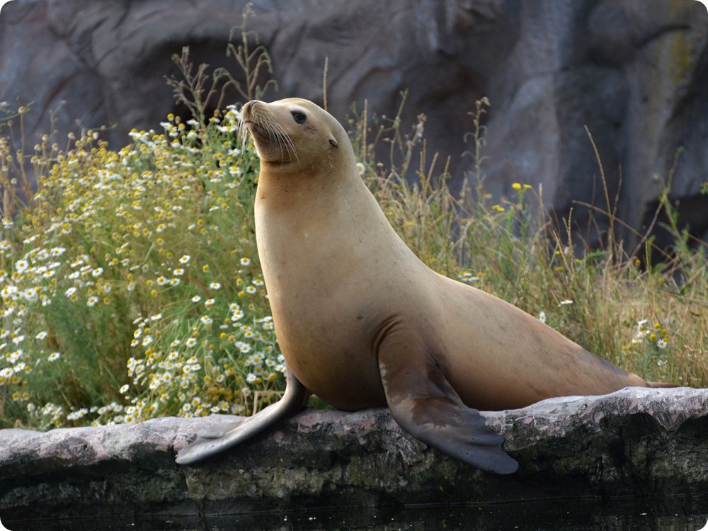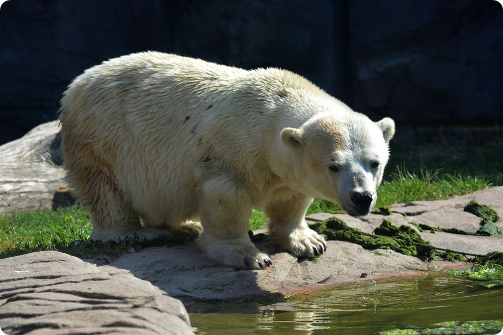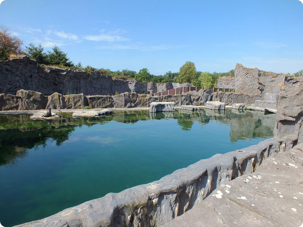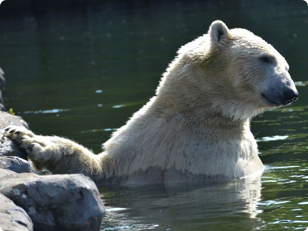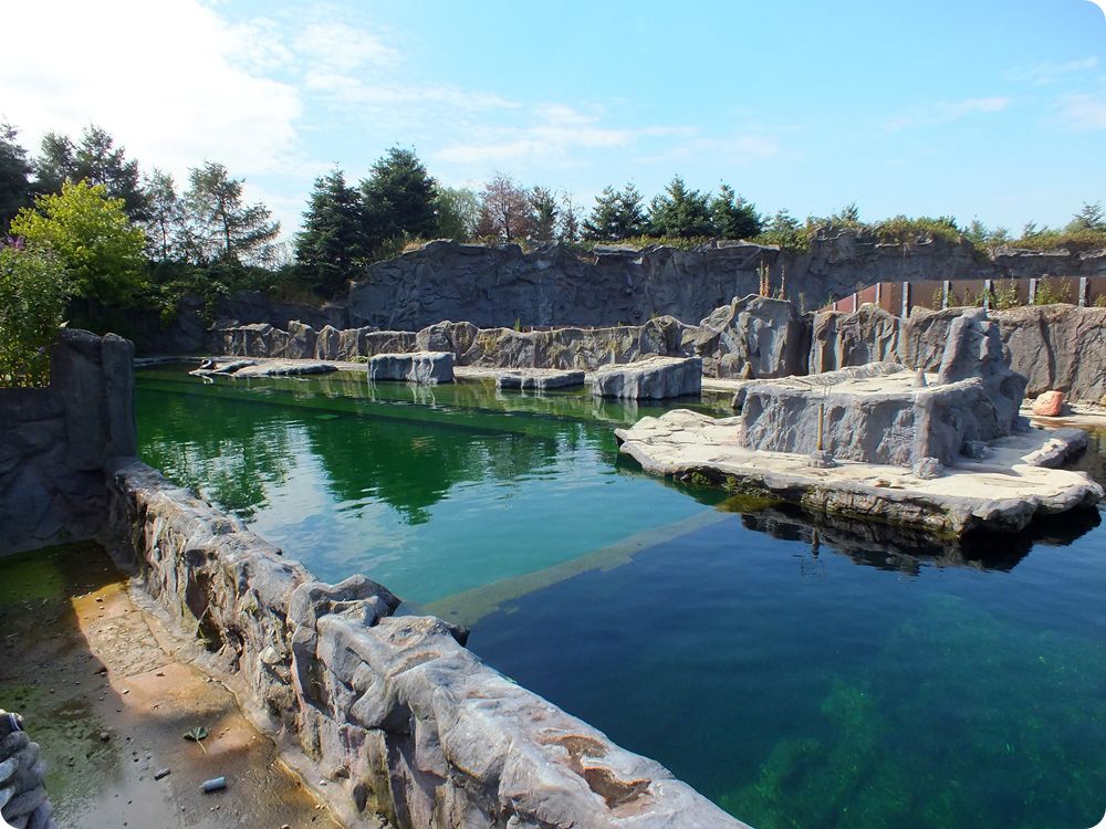 A hegyvidék után a valódi sarkvidékre jutunk. Az út mellett egy partra vetett bálna csontvázának másolatát tekinthetjük meg, majd a kaliforniai oroszlánfókák (Zalophus californianus) medencéjéhez jutunk (igaz, ez a faj se fordul elő Alaszkában). Látogatásomkor 16 egyedet számláló csapatot tartottak Gelsenkirchenben. A kifutó a maga 1800 m2-ével Európa egyik legnagyobb fókamedencéje, mely hosszú kialakításával remek lehetőséget biztosít az úszásra a vízi emlősök számára. A természet illúzióját itt is mesterien megformált műszikla biztosítja. Utunk egy barlangszerű járaton vezet át, melyből hosszú üvegalagúton keresztül figyelhetjük meg a fókák víz alatti mozgását, majd továbbhaladva kisebb ablakokon már a jegesmedvék (Ursus maritimus) medencéibe pillanthatunk be. A kert öt jegesmedvéje három kifutót birtokol, melyek közül kettő nagy alapterületű, nagy vízmedencével. A kifutók kialakítása nem a korábban Európában elterjedt csupasz műszikla jellegű, inkább a tundra alacsony, gyepszerű növényzetét imitálja, így rendkívül mutatós és természetes megjelenésű. A harmadik, legkisebb kifutó lakója egy igazi kis különlegesség: itt él Antonia, a törpe növésű jegesmedve. Antonia Karlsruhe állatkertjében született 1989-ben, és már akkor világosan látszott meglepően apró termete. Egy ideig természetes úton, az anyjával nevelkedett, majd 1991-ben költözött Gelsenkirchenbe. Mindössze 70 cm-es marmagassága miatt más jegesmedvékkel nem tartható együtt, így saját kényelmes, termetéhez mérten kellően tágas kifutót kapott. Mivel a jegesmedvék a természetben is társaságkerülő, magányos állatok, az egyedüllét nem okoz különösebb gondot Antoniának.
