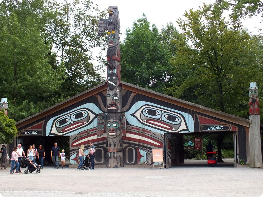 Az indián motívumokkal díszített kapun áthaladva a mérsékelt övi esőerdő régióba jutunk. Elsőként az eurázsiai hiúzok (Lynx lynx) műszikla hátterű, dúsan növényesített, fás-bokros kifutójához érünk. Az állatok széles, villanypásztorral biztosított vizesárkon át és számos ponton elhelyezett üveges betekintőablakon keresztül is megtekinthetők. Érdekesség a kifutó mellett felépített autentikus prémvadászkunyhó, melybe belépve úgy érezhetjük, mintha Jack London egyik regényébe csöppentünk volna. A kunyhó ablakaiból szintén remek rálátás nyílik a hiúzkifutóra. A közelben egy műszikla- kiszögellésben találjuk a hóbaglyok (Bubo scandiacus) röpdéjét. Jelenleg hat példány látható. A kanyargó ösvény mellett fekszik a mosómedvék (Procyon lotor) kifutója. A gazdag növényborítás mellett az állatokat időbe telhet észrevenni, pedig jó néhány példány lakja a férőhelyet: személy szerint 8 állatot pillantottam meg az itt tartott tizenháromból. A kifutót terjedelmes vizesárok választja el a látogatóktól, ami amellett, hogy kifogástalan rálátást biztosít, remek elfoglaltságot ad a vízben szívesen tevékenykedő állatoknak is. Egy nagyobb területű, nádassal határolt terjedelmes medencével és elkülönítési lehetőséggel is rendelkező férőhelyen jávorszarvasok (Alces alces alces) élnek. Jelenleg egy fiatal bika és egy felnőtt tehén látható az állatkertben. Az Alaszka-bemutató talán leggyengébb pontja az észak-amerikai kúszósülök (Erethizon dorsatum) és kanadai hódok (Castor canadensis) közös bemutatója. A hódok lépcsőszerűen kialakított, több medencéből álló területet használhatnak, annak parti területével egyetemben. Ezzel szemben a kúszósülök csak a kifutó fölé emelt, fából épült ösvényeket használhatják, a talajra nem tudnak lejutni, így meglehetősen korlátozott területen mozoghatnak, ami éles ellentétben áll a kert többi, kicsinek egyáltalán nem nevezhető férőhelyeivel. Az éjszakai életmódú hódokat nappal csak kis szerencsével pillanthatjuk meg, de az odújukba üvegablakon betekintve nem maradunk le a nagy rágcsálók látványáról. A hódok medencéjéről leválasztva találjuk egy kanadai vidra (Lontra canadensis) kifutóját. Gelsenkirchenben több kanadai vidra is él, a kert egy másik pontján kialakított (nagyságrendekkel jobb) kifutóban. A következő területen a már látott észak-amerikai kúszósülök mellett (akik ebben a kifutóban sokkal jobb körülmények között élhetnek, mivel a gazdag mászási lehetőségek mellett akár a talajra is leereszkedhetnek) az állatkertekben nem túl gyakori csíkos szkunkok (Mephitis mephitis) több színváltozata is látható. Érdekesség, hogy az állatokra a kifutó mellet elhelyezett öreg amerikai katonai csapatszállító busz belsejéből is vethetünk egy pillantást (sőt, a szkunkok pihenőhelyére innen látunk rá a legjobban, sajnos csak a meglehetősen karcos és homályos ablakon át). Az ösvényen haladva megtekinthetjük a fókák és jegesmedvék medencéinek szűrésére használt érdekes megoldást: a vizet egy elárasztott mezőn, nagy területen, növények segítségével tisztítják meg a szennyeződésektől.